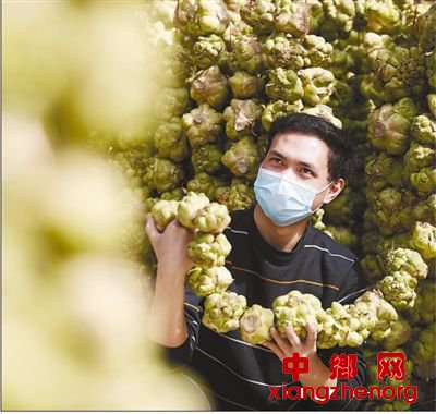 2月17日,重庆市黔江区望岭村驻村第一书记田富在村里的青菜头加工厂查看青菜头晾晒情况。
