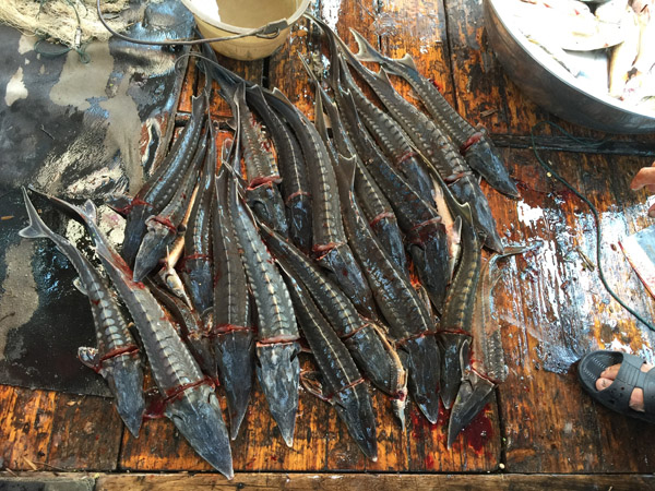 洪湖江段7月29日捕捞的逃逸杂交鲟(小规格,西杂——西伯利亚鲟和史氏鲟的杂交后代,已处死)。农业部长江办供图