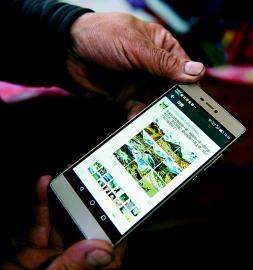杨朝洪给记者展示用手机拍摄并发到朋友圈的当地美景。川报全媒体集群直播长征路报道组记者 田为 摄