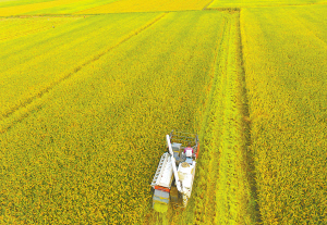 深秋时节,宁波市近郊一处水稻田迎来丰收季。(周建平摄)