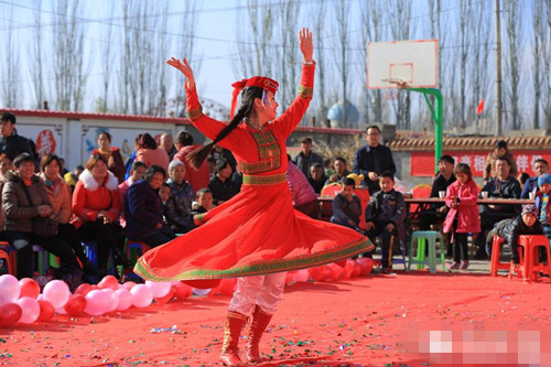 活动现场,二十五团社区的姐妹舞蹈队和芒南查干村的村民一起表演了精彩的民族舞蹈,在音乐“快乐的跳吧”感染下,大家纷纷相互邀请着跳起了欢快的维吾尔族舞蹈麦西来普。大家还在写有“二十五团与芒南查干村‘民族团结一家亲’结对子认亲戚签名寄语”横幅上签上了表达心愿的祝福语,并合影留念。