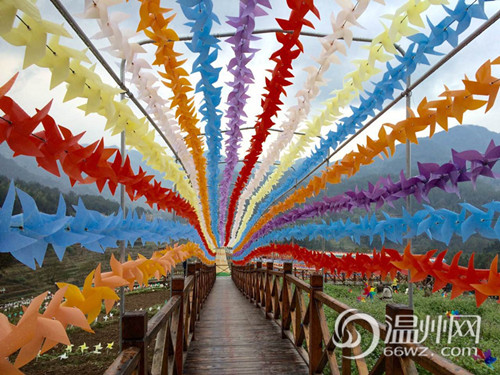和着绵绵细雨,采风团一行来到文成县黄坦仙人居农庄。处在梯田中间的风车走廊极为“吸睛”,附上田间的紫色小花,构成了一幅唯美的童话世界。