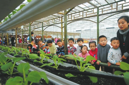 小朋友们参观现代农业种植。刘学懿摄