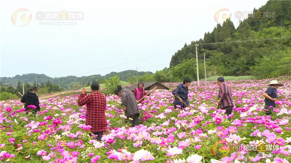 目前,340多亩芍药地里的芍药还没上市销售,不过西阁村村民可以在家门口的芍药地里打工挣钱,每人每天40元工钱,有村民老两口都在地里干活,两人每天在家门口就能赚80元钱,可以用于改善生活。