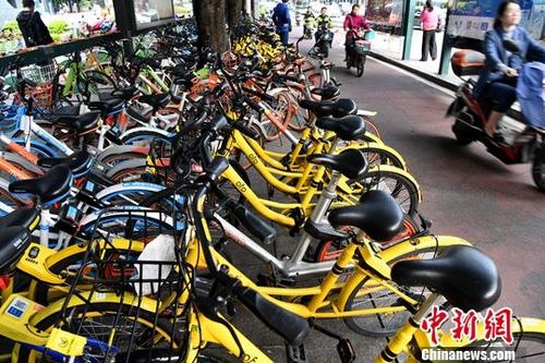 资料图:共享单车在福州城区扎堆投放。中新社记者 张斌摄