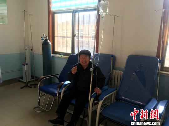 图为75岁的村民张尚中在中心村卫生室输液。谈到现在就医的便利,他竖起大拇指。 李英 摄