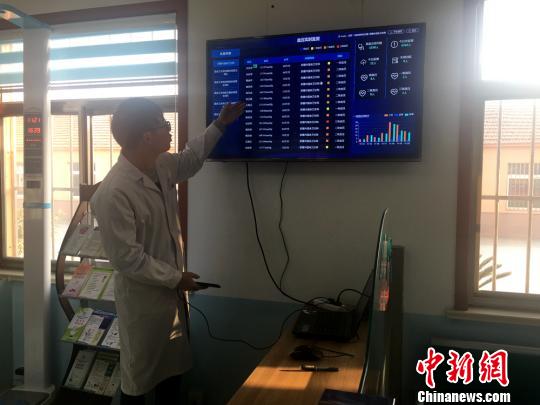 图为当地中心村卫生室里的信息化显示屏,时时监控周围有慢性病的重点人群。 李英 摄