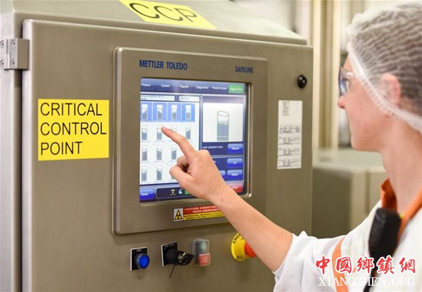 国内某乳业集团在新西兰波基诺小镇建厂,年产能力已超52000吨婴幼儿配方奶粉,并为当地创造大量就业。图为工厂密闭生产车间内,技术人员用触摸屏调看实时生产数据。新华社记者郭磊摄