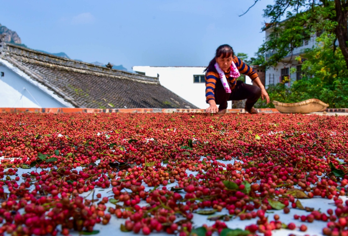 8月15日,涉县王金庄村农民在晾晒花椒。