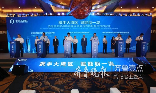 鲁网9月11日讯 携手大湾区,赋能创一流。9月11日,济南高新区(深圳)双招双引恳谈会举行。济南高新区(深圳)新旧动能转换促进中心揭牌,15个合作项目集中签约。济南市委常委、高新区管委会主任王宏志出席活动。
