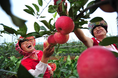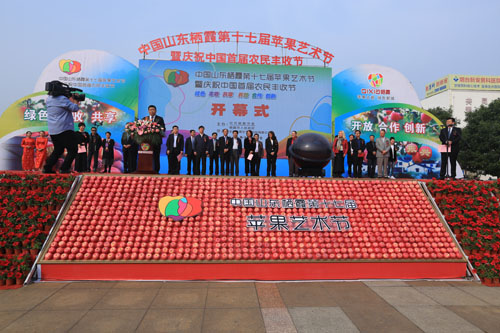 本网讯(王强 记者 吕兵兵)十月的栖霞,硕果累累。第十七届中国?山东栖霞苹果艺术节暨庆祝中国首届“农民丰收节”日前在栖霞开幕,来自法国、德国、意大利、俄罗斯、智利、巴西、阿尔及利亚等国家的十余名驻华使节齐聚“果都”,为栖霞颁授“世界苹果之城”、“全球驻华大使馆指定专用水果”两块牌匾,栖霞苹果再添金字招牌。出席第十七届苹果艺术节的驻华使节还将担任“中国?栖霞苹果推介全球形象大使”,通过自身影响力与传播力,向世界推介栖霞和栖霞苹果。