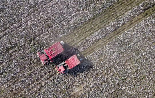 尉犁县利华棉业有限责任公司副总经理余斌辉说:“棉花种植成本,有一半是棉花的采收成本,如果选择机采方式,比人工采棉一亩地可以节省300元到500元的采收费。相对来说一亩地的收益增加到300元到500元。”