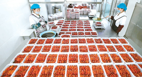 地处淮河下游、洪泽湖南岸的盱眙县是我国著名的龙虾之乡。近年来,当地不断开拓市场,在产品创新和冷链物流方面提档升级,龙虾产品通过“互联网+”销售模式供应国内市场的同时,出口英国、澳大利亚、新西兰、马来西亚等国家和地区,年产值超百亿元。(周海军 许昌银)
