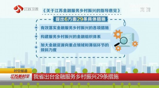 人民银行南京分行等六部门近日联合出台《关于江苏金融服务乡村振兴的指导意见》,针对金融服务乡村振兴的关键问题和重要环节,提出6个方面29条具体措施。