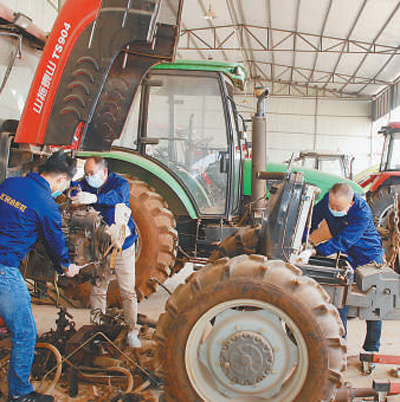 2月5日,云南省曲靖市沾益区菱角乡汇民农机专业合作社员工在对农机进行护理检修。 |