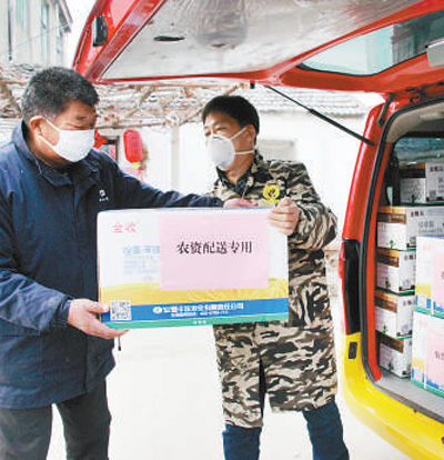 2月5日下午,安徽省涡阳县组织有关农业部门把农民需要的农资,配送到门市部、农户家中。 |