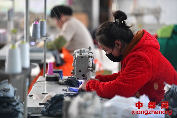 图为近日,在该区枣庄镇蒋楼村扶贫车间内,工人正在制作订单服装