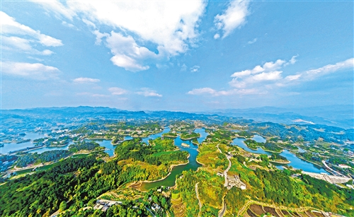 蓝天白云下的重庆市万盛经开区青山湖国家湿地公园美景。 王泸州摄(中经视觉)