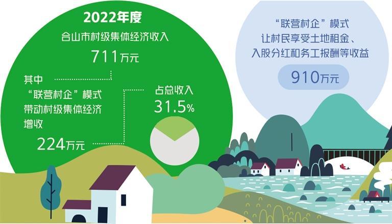 “联营村企”推动产业联带、资源联营、群众联动,实现村集体、企业、群众三方受益。2022年度,合山市村级集体经济收入达711万元,其中“联营村企”带动村级集体经济增收224万元,占总收入的31.5%。“联营村企”模式让村民享受土地租金、入股分红和务工报酬等收益910万元。来源:经济日报
