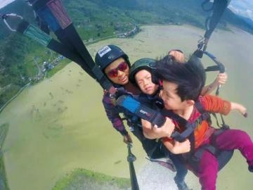 对雯雯来说,最难忘的经历,就是第一次“飞”上了天空。在尼泊尔博克拉,4岁的她玩起了滑翔伞。“她和哥哥一起坐的,我和她妈妈都不在身边。”潘土丰说,半个小时的滑翔过程中,最高处距地1600米,“雯雯下来后,特别兴奋。”
