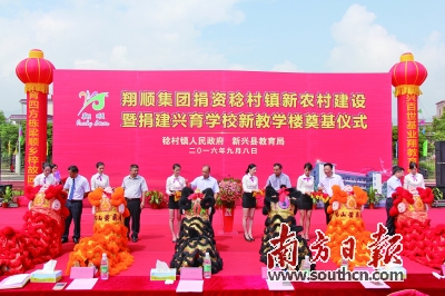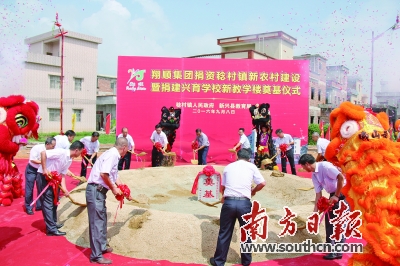 “感谢翔顺集团多年来一如既往地关心关爱稔村镇新农村建设及兴育学校教育事业发展,翔顺集团为本土企业树立了良好的榜样。”9月8日,在翔顺集团捐资稔村镇新农村建设暨捐建兴育学校新教学楼奠基仪式上,新兴县人大代理主任梁锦钊这样说道。当天上午,翔顺集团再次向兴育学校捐资500万元为兴育建设一幢新教学楼;捐资330万元支持稔村镇新农村建设,仪式喜庆而隆重。