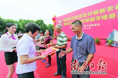 上午十时许,新农村建设、新教学楼捐资仪式准时举行,翔顺集团董事、副总裁崔健全代表翔顺集团向新兴县委常委、常务副县长刘锋汉移交500万元新教学楼建设资金(支票);翔顺集团财务总监潘锦基代表集团向稔村镇镇长甘中德移交新农村建设资金330万元支票。