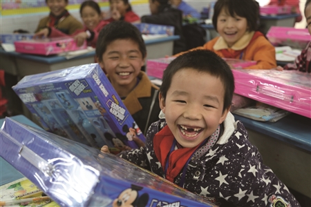 11月24日,刚好是西方的感恩节,也正遇寒潮袭击重庆,冷风飕飕,尤其是重庆的山区格外寒冷,可寒冷之中却不乏温暖——广发银行重庆分行“爱心之旅校园行”的20名志愿者为綦江区石角镇新民小学齐雨村小学和綦江区赶水镇适中小学两校的378名小学生送去了满满的关爱——向两所学校赠送了“爱心大礼包”,包内有卡通文具套装400套、篮球5个、足球5个、乒乓球拍5副,以及广发银行重庆分行员工捐助的自家适合小学生穿的衣物和图书。