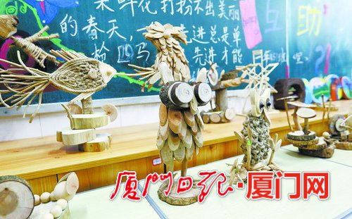 “五福临门、京剧脸谱、力量之手、金鸡报晓……”14日,“莫兰蒂”台风灾后重建作品制作冬令营在海沧拉开帷幕,一件件台风灾后留下的废弃物料,通过孩子们的巧手,“变身”形态各异的手工作品,重获“新生”。