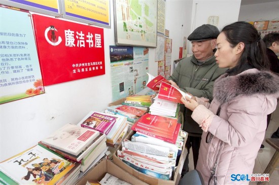 四川在线泸州消息(赵飞 李兰)2月8日,四川省泸州市龙马潭区罗汉镇临江苑社区老人曾光义自办的“健康书屋”迎来廉洁新书,健康书屋变身社区“廉洁书屋”。