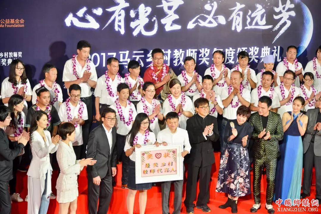 马云和他的企业家、明星朋友上台为获奖的乡村教师颁奖