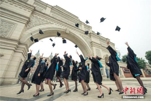 资料图:2017年6月,四川一高校发布了一组毕业照,毕业生们齐齐在校门高呼“我们毕业了”。莫小布 摄