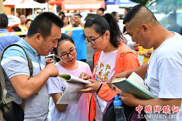 6月7日,在吉林省长春市实验中学考点,考生在考前与家人合影。
