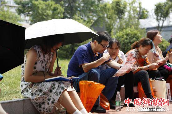 陪考家长等待参加首场考试的孩子。中新社记者 沙见龙 摄