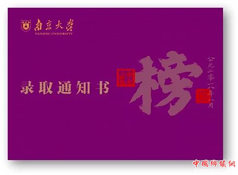 录取通知书的封套上的“榜”字来源于南京科举博物馆中殿试皇榜的拓印,散发着古老而肃穆的拓印让南大新生们瞬间变身考中进士的秀才们,享受“寒窗苦读十余载,一朝鲤越龙门”的喜悦与满足,“榜”字也在勉励所有的南大学子成为青年“榜样”。