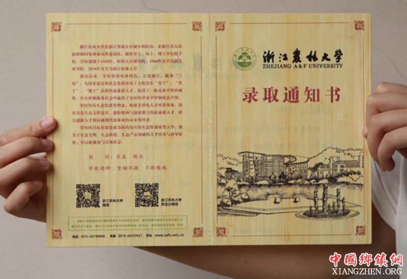 嗅着淡淡的竹香气,欣赏着印在通知书上的校园风光,颇有穿越回竹简时代的古韵,是浙江农林大学对每一位未来“农林人”的艺术馈赠,向新生传递着学校崇尚科技、文化、生态的价值观。