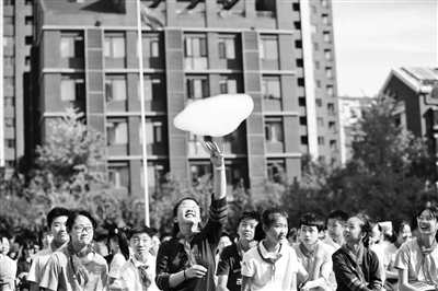 典礼尾声,校长王海霞从一个玻璃大胶囊中,随机抽取出两位幸运学生的“梦想小胶囊”,伴随着家长、教师代表与校长共同拉响的开学铃声,龙樾实验中学的学生们一同放飞手中的彩色纸飞机,他们的新学年正式开始了。摄影/张一名