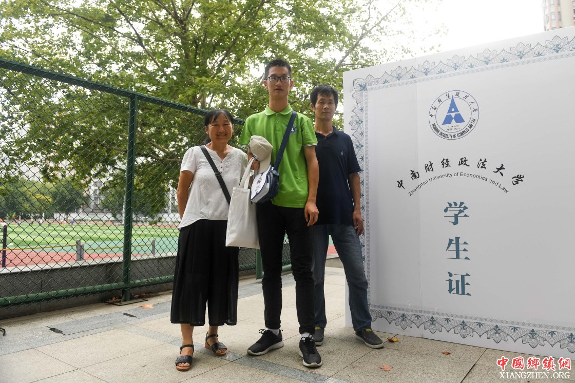 9月1日,在中南财经政法大学内,江剑(中)与母亲江小平和父亲叶大利合影留念。
