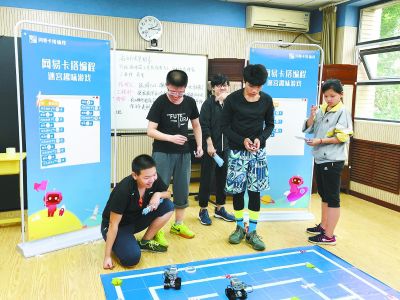 在健翔学校牡丹园校区教学楼四层的计算机房里,十几名听障学生正坐在电脑前,聚精会神地盯着屏幕,在屏幕里,一只顽皮的小章鱼游来游去……为了参加由海淀区教委主办、海淀区教育科学研究院承办、网易集团协办的海淀区第二届“智慧杯”中小学生计算机程序设计大赛,健翔学校特意邀请了协办方网易卡塔编程的老师来给听障学生上一节体验课。