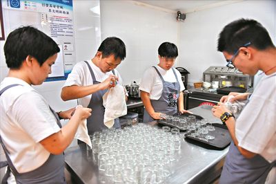 从一楼送到客人手中,需要走三层的楼梯。托着托盘的诗诗十分小心谨慎,之前见到记者到来还雀跃不已的她立刻安静了下来,生怕一分心就把糖水洒了。