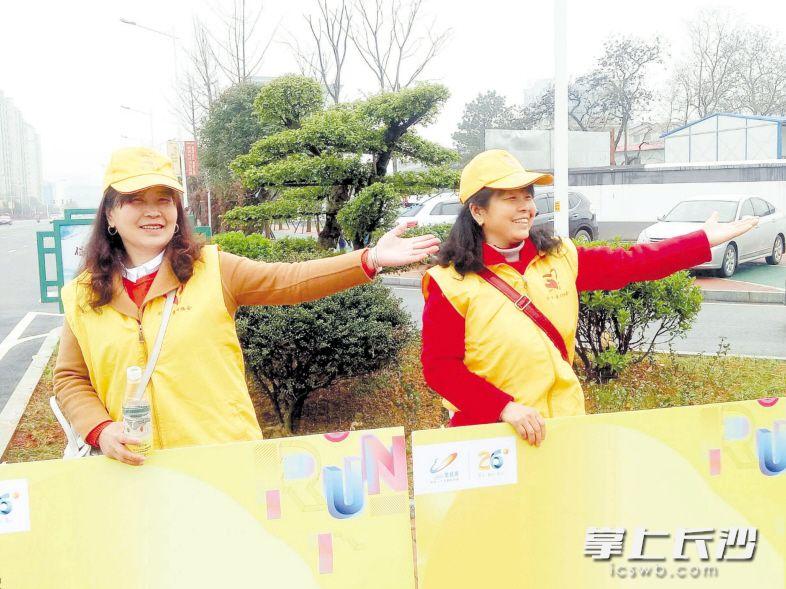李远护(右)和伙伴一起在活动中做义工。长沙晚报通讯员张宋姣摄
