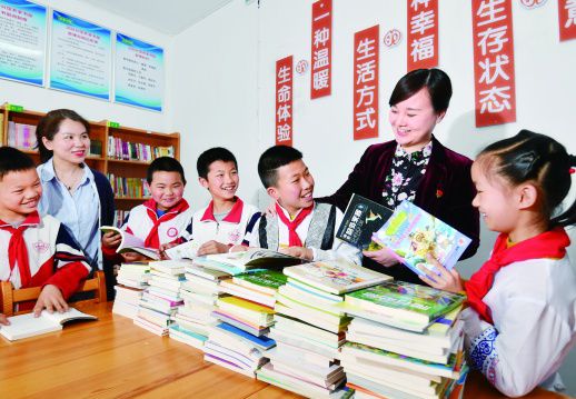 4月19日,长沙市开福区沙坪街道汉回村,工作人员将一批新书送到孩子们的手中。当天,该区文化旅游体育局在汉回农家书屋举行“世界读书日”活动,鼓励学生多读书、读好书。目前,该区已建成标准化农家书屋31家,图书数量达12万册。