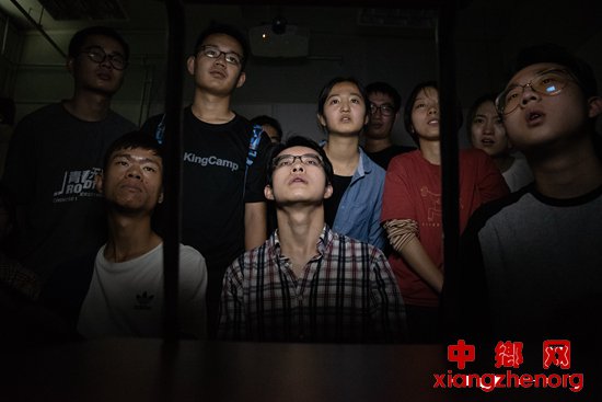 9月25日,中国人民大学,结束当天训练后,冰球队员们在笔记本电脑上观看职业冰球比赛的录像回放。在此之前,队中多数球员没有看过正式的冰球比赛。