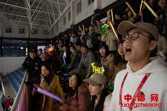11月10日,2019中国大学生冰球锦标赛揭幕战,清华大学对战北京大学,看台一侧的清华学生为球队呐喊助威。这是本届锦标赛最受关注的一场比赛,上层看台坐满了观众。