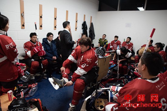 10月19日,首都体育学院的王子晴在北京一家冰场的替补席上观看比赛。当晚,北京几所高校冰球队的女队员组成联队,与一支业余球队进行比赛。大学生勉强凑齐赛制要求的6名球员,3名教练也不得不轮换上场。