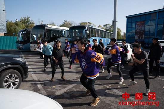 11月10日,北京一家冰上运动中心外,清华大学冰球队的队员们在热身。当天,2019中国大学生冰球锦标赛在这里正式开幕。