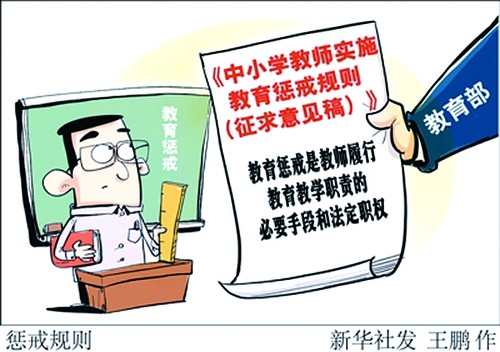 11月22日,教育部正式发布了《中小学教师实施教育惩戒规则(征求意见稿)》(以下简称征求意见稿),并面向社会公开征求意见。根据征求意见稿,教师可以对学生实施一般惩戒、较重惩戒、严重惩戒等。普通中小学校、中等职业学校、特殊教育学校教师对学生实施教育惩戒均适用该规则。教育行政部门、学校应当支持教师正当行使教育惩戒权,制止有害于学生或者侵犯学生合法权益的言行。
