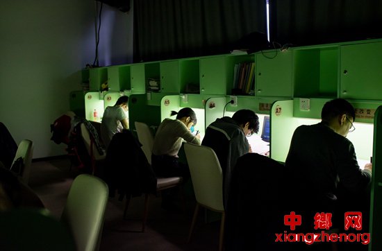 11月22日,北京中关村一家付费自习室内,顾客在“暗室”中学习。正值考研季,付费自习室里的多数顾客都是为考研而来。