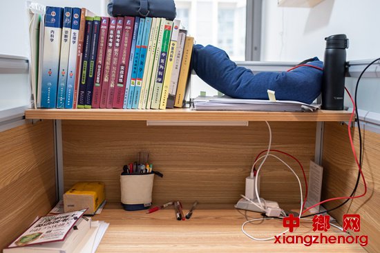 11月23日,北京望京一家自习室的座位。连续使用自习室的顾客,可以在这里储存自己的物品。