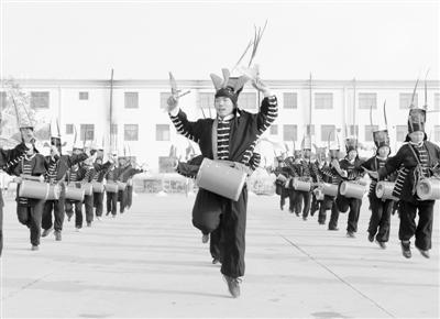 临近春节,喜庆的鼓声从甘肃省武威市凉州区四坝镇九年制学校的校园内传来。攻鼓子是发源于甘肃武威的一种民间鼓乐舞蹈,表演风格浑厚豪迈、威武雄壮,具有强烈的地域特色。2008年,凉州攻鼓子被列为第二批国家级非物质文化遗产。为更好地传承这项非物质文化遗产,该校组建攻鼓子艺术社团,开设攻鼓子校本课,定期由当地攻鼓子代表性传承人对学生进行指导,推动“非遗”攻鼓子艺术教育普及。图为学生正在操场练习攻鼓子。新华社记者 耿馨宁摄
