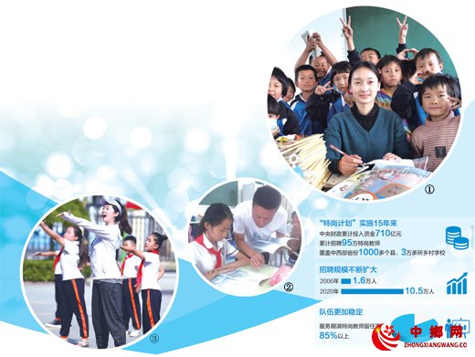 农村义务教育阶段学校教师特设岗位计划(简称“特岗计划”)始于2006年,每年公开招考选聘数万名高校毕业生到中西部贫困县农村学校任教。
